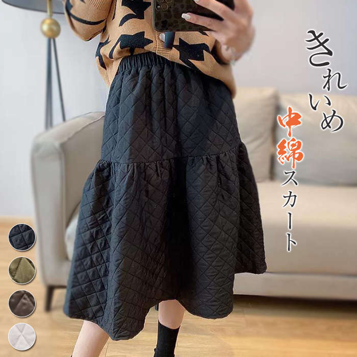 キルティング スカート 赤外線中綿 レディース 秋冬 ボトムス ロング ミモレ丈 膝下 ロングスカート フレアスカート Aライン フレア きれいめ 中綿 暖かい 撥水 大き