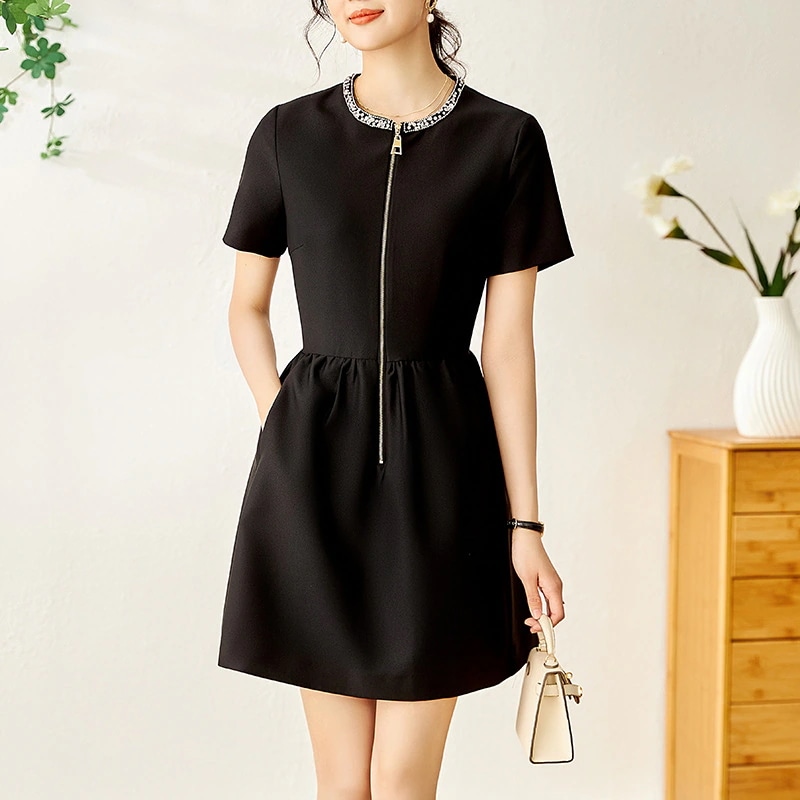 新しいダイヤモンドフロントジップウエスト細いAラインの女性のドレス その他 ワンピース ドレス