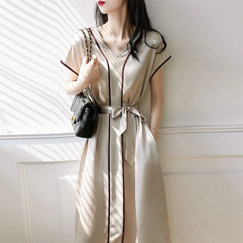 ワンピース夏の新作ワンピースレトロモダンVネックバンドウエストA字スカート その他 ワンピース ドレス