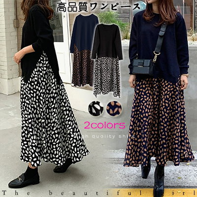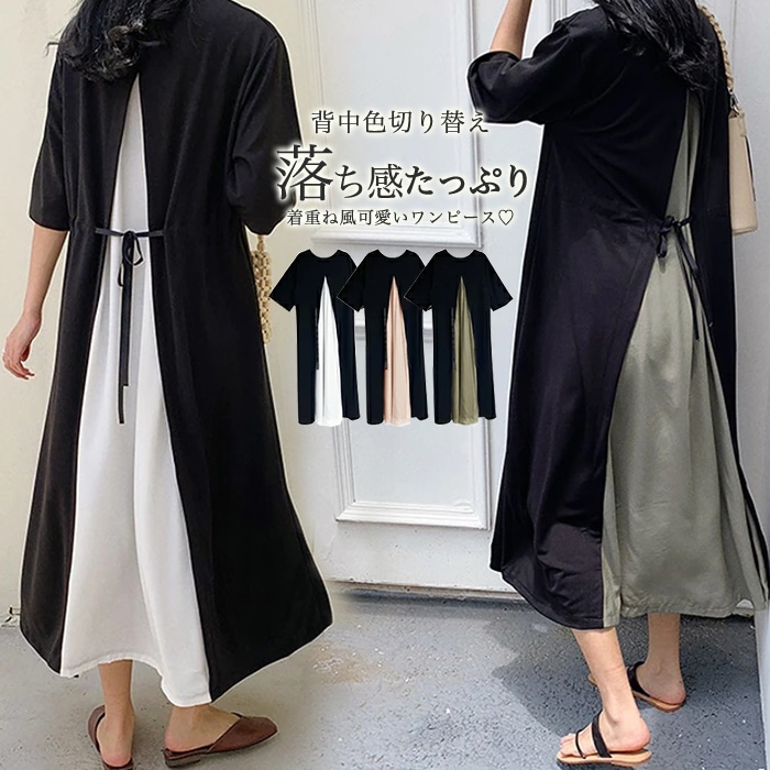 レディース ロング丈 長袖 半袖 ラウンドネック ワンピース エレガント ファッション 切り替え ロ その他 ワンピース ドレス