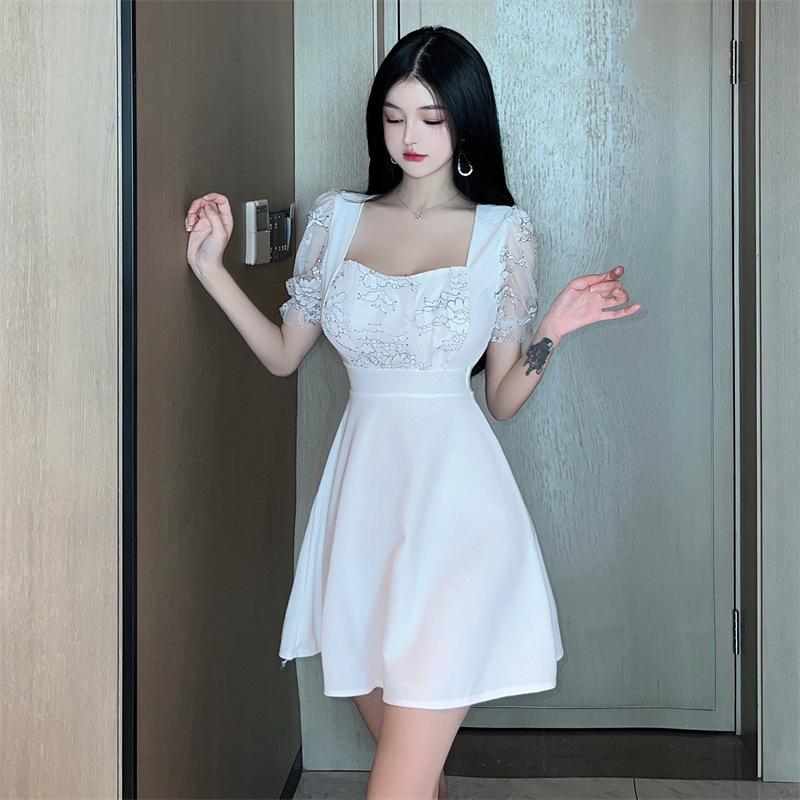 ワンピース レディース ドレス パーティー キャバドレス ミニ丈 白黒 スクエアネック 半袖 ダンス発表会 お呼ばれ ナイトクラブ 春夏 おしゃれ 女子服