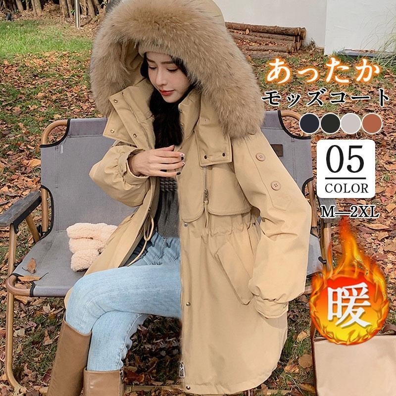 モッズコート レディース 中綿コート ファー付き取り外し可能 ミディアム丈 アウター 大きいサイズ 着痩せ 上品 あったか 韓国ファッション 冬服
