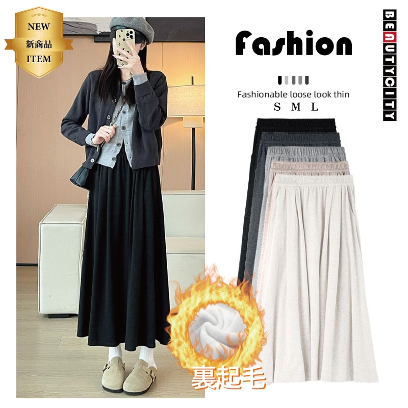 裏起毛スカート韓国ファッションレディースロングスカート フレアスカート 秋 冬 春 スカート Aライン ボトムス ハイウエスト 快適 伸縮性 ストレッチ ポケット 無地