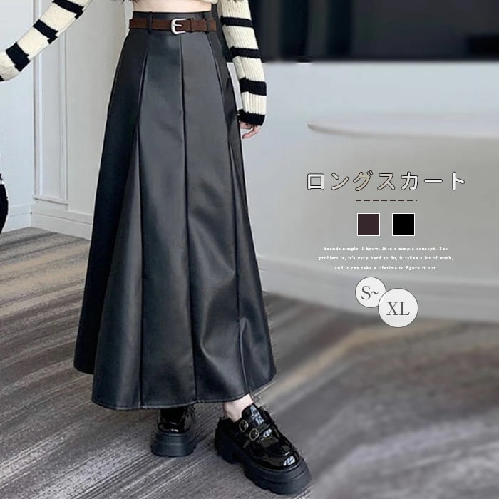 ロングスカート PUスカート Aライン エコレザー マキシスカート フレアスカート ロング丈 マキシ丈 レディース ボトムス 春服 秋服 ハイウエスト 着痩せ 通勤 カジュアル 女性らしさ おしゃれ