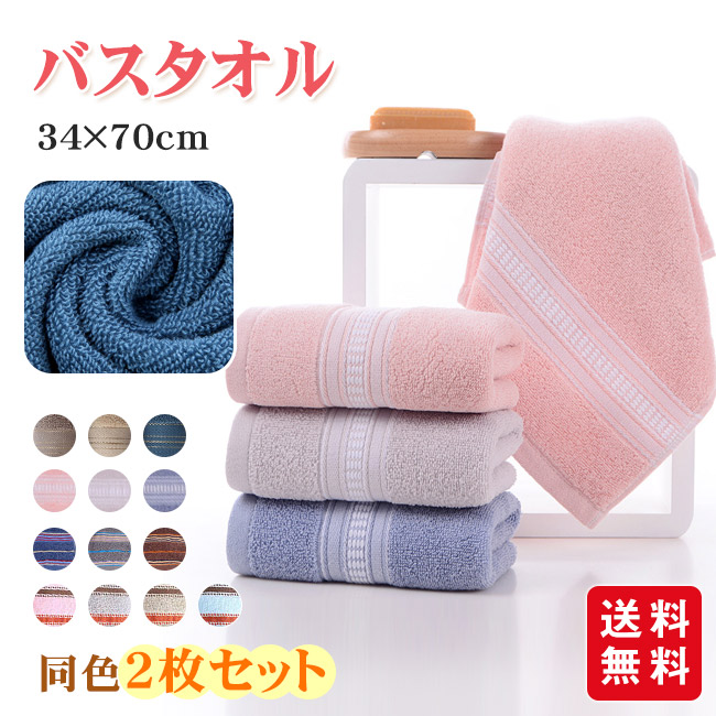 タオル フェイスタオル 2枚セット まとめ買い 34x74cm 厚手タオル 吸水抜群 ふわふわ 新生活応援 大きい 大判 シンプル 可愛い