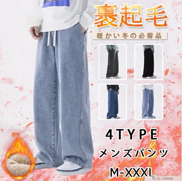 デニムパンツ メンズ ボア 裏起毛 ビジ デニム・ジーンズ パンツ メンズファッション