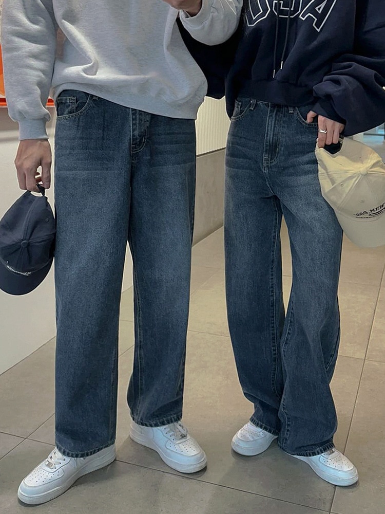 カップル ジーンズストレートパンツのトレンドのサブ韓国版男女cleanfitルーズワイドパンツ デニム ジーンズ