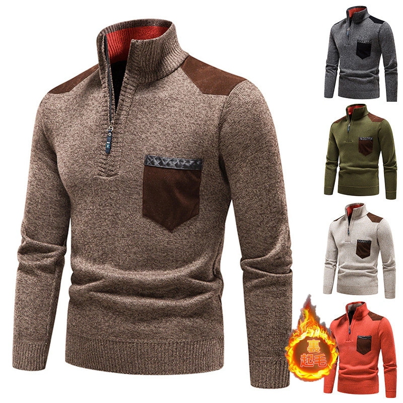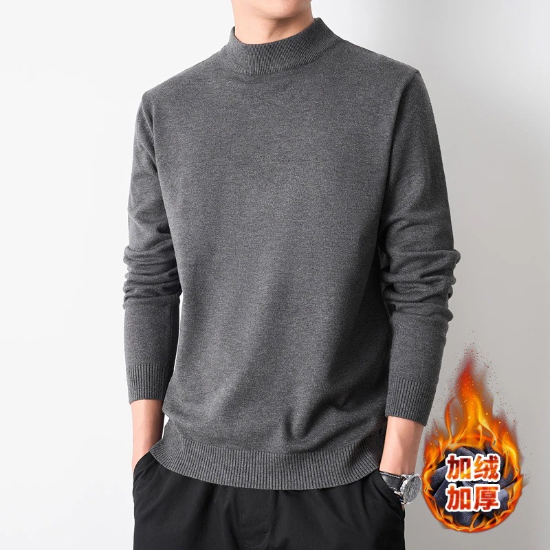 秋と冬のセミハイネック中わた入り厚手ジャンパー無地シンプルで暖かいインナーニットセーター男性用 ニット セーター