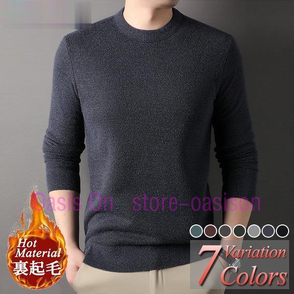 無地 裏起毛 保温 寒さ対策 メンズ トップス 暖かい 防寒 長袖 体型カバー セーター 仕事用 秋冬 ニットセーター カジュアル 裏ボア ニット