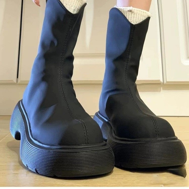 黒の厚い底が高くなったマーティンブーツ女性の新型秋冬英倫風の小柄な痩せた丸いブーツ その他 ブーツ ブーティー