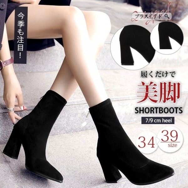 ショートブーツ レディース ストレッチブーツ スエード調 黒 裏ボア バックジップ 太ヒール チャン その他 ブーツ ブーティー