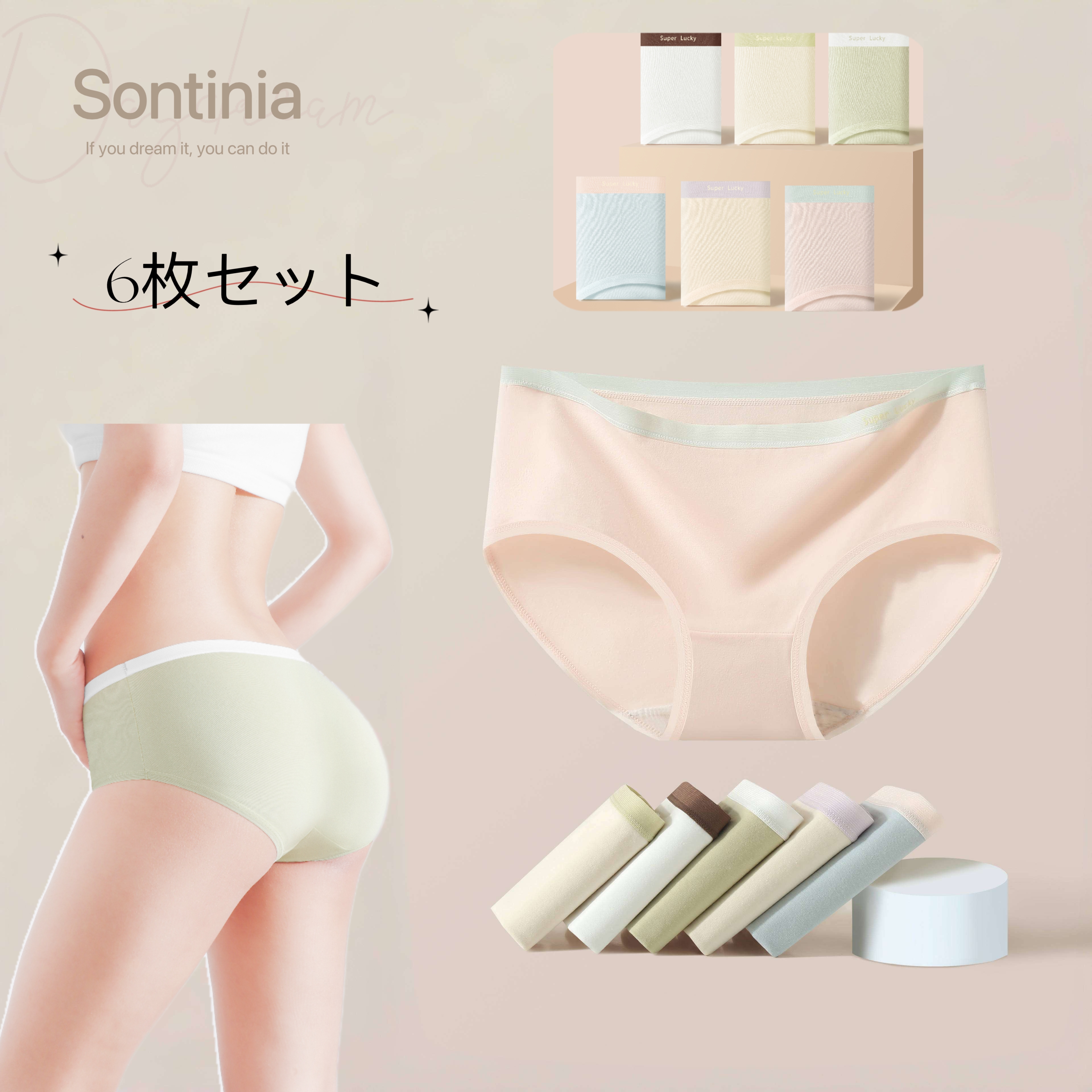 Sontinia 6枚セット ショーツ レディース パンツかわいい浅履き くすみカラーすっぽり 包み込む インナー オールシーズン綿 コットン ノーマル 無地 通気性下着 産後 敏感肌 女性
