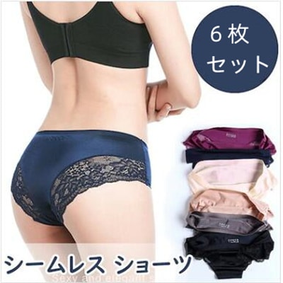 ショーツ6枚セットレース付きパンツ ショーツ 下着 インナー 柔らかいショーツセット シームレス レース 無地ショーツ ショーツ