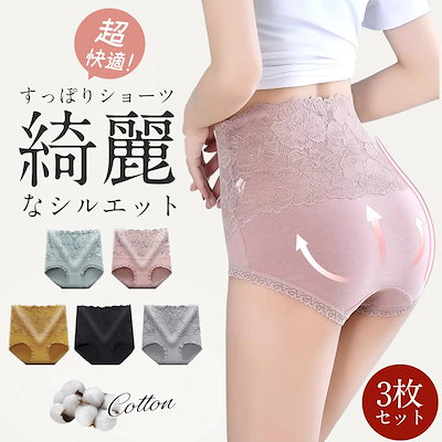 ショーツ レース 3枚セット レディース ハイウェスト シームレス 無地 深履き レースすっぽり 下着 パンツ 冷えとり 通気 産後 骨盤 補正下着