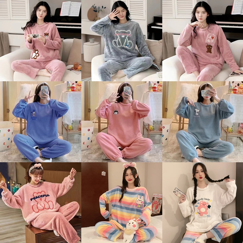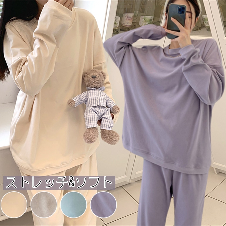 ストレッチ&柔らかいルームウェアセットアップ部屋着レディースパジャマ秋冬上下セット韓国ファッション ルームウェア