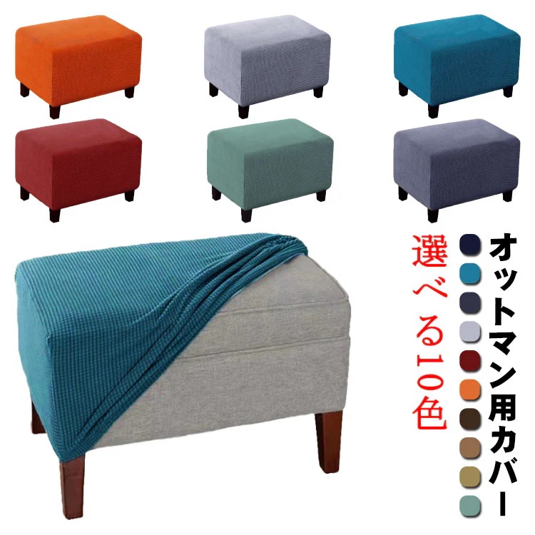 選べる10色 オットマンカバー オットマン保護カバー 長方形 足置きカバー 踏み台カバー 伸縮 ストレッチ 簡単着脱 洗える おしゃれ 無地 汚れ防止 キズ防止 ペット 爪とぎ防止 インテ