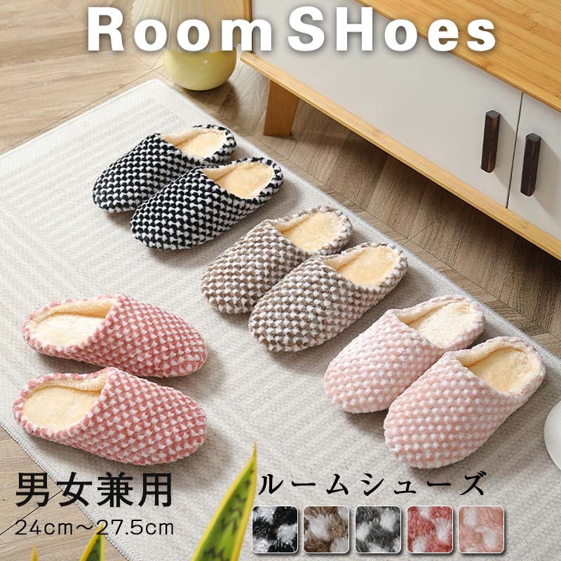 2点購入で600 OFF スリッパ 冬用 暖かい 軽量 蒸れない もこもこ ボア ルームシューズ チェック 洗える メンズ 大きいサイズ 滑り止め レディース おしゃれ かわいい 吸湿発熱素材