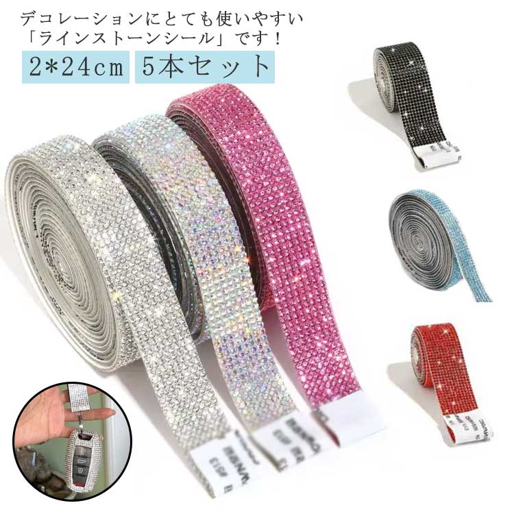 ラインストーン ステッカー 2*24cm キラキラ 5本セット デコレーションシール 手工芸 ウェディング スパンコールテープ クリスタル風 DIY用 お洒落 飾り用