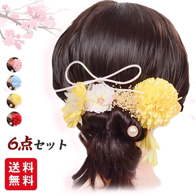 髪飾り 成人式 6点セット 髪留め Uピン 花 リボン 卒業式 七五三 お祭り 着物 浴衣 和装 結婚式 花嫁 子供 大人 プレゼント ギフト