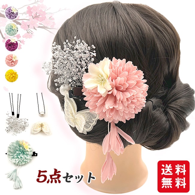 髪飾り 成人式 5点セット 髪留め Uピン 花 卒業式 七五三 お祭り 着物 浴衣 和装 結婚式 花嫁 子供 大人 プレゼント ギフト