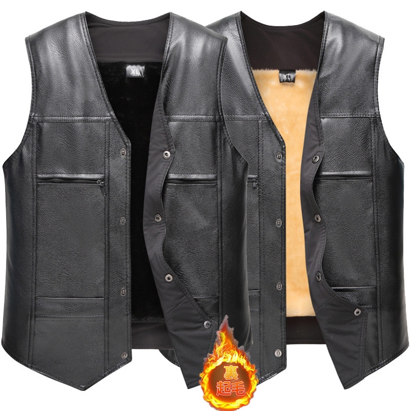 レザーベスト メンズ 裏起毛ベスト 合皮 Vネック ビジネス オフィス 厚手 ノースリーブ 前開き アウトドア 防寒 暖かい 通勤 通学 無地