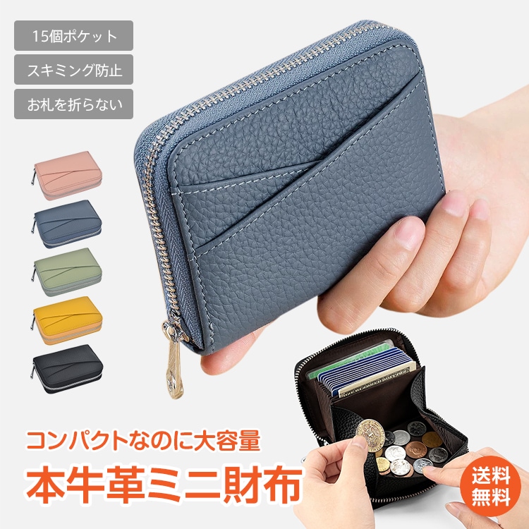 2点ご購入すると100円OFF ミニ財布 本革 牛革 レディース カードケース カード入れ 多い 二つ折り 折りたたみ ミニウォレット コンパクト 小さい財布