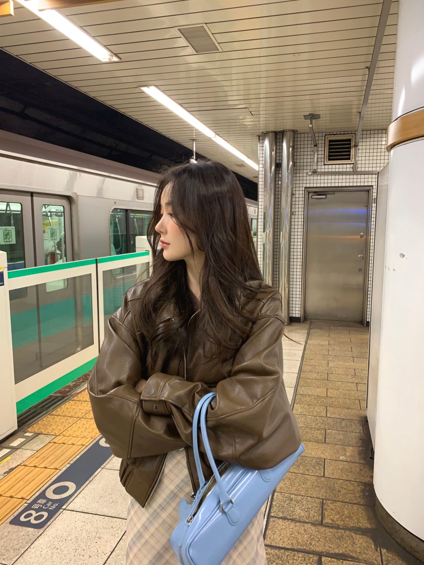 冬アウター女性のための韓国風レザージャケット2023春と秋の新しいスタイルショートレトロスタンドカラーオートバイジャケット ライダースジャケット