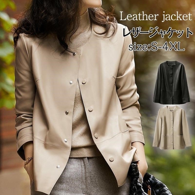 PU レザー ジャケット レディース ライダースジャケット 春 秋 冬 長袖 大きいサイズ シングルライダース ブラック 革ジャン ライトアウター ジャンパー カジュアル 羽織り 上着 ノーカラー ブ