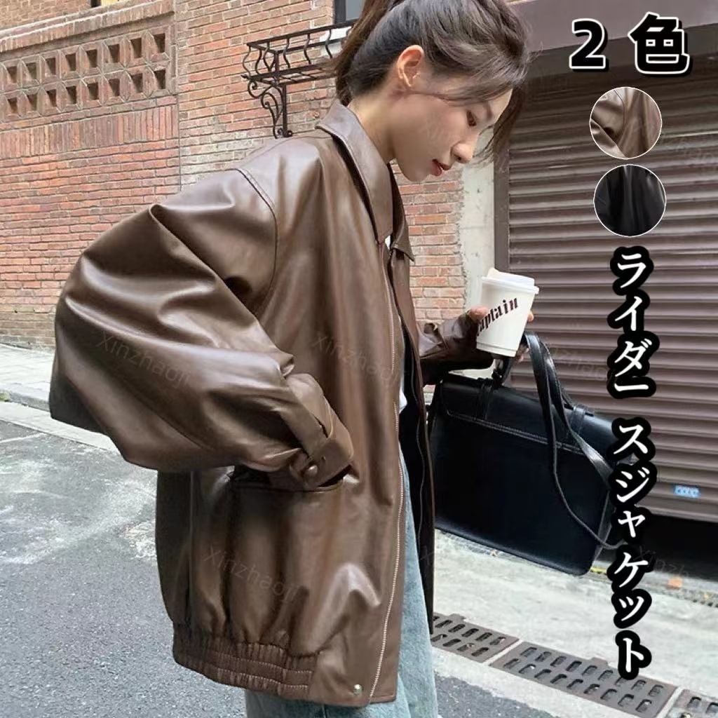 秋新作 レザージャケット 韓国ファッション ジャケット レディース ゆったり百掛け 秋 アウター PU ライダースジャケット ライダースジャケット