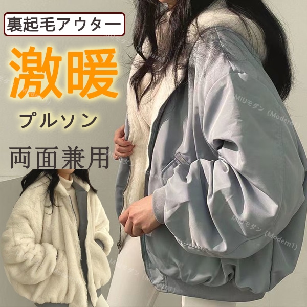 激暖ブルゾン 両面兼用 裏起毛 パーカー レディース 防風 防寒 トップス 上着 長袖 大きいサイズ ゆったり 秋冬 コットンアウター トレンチコート