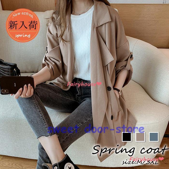 トレンチコート レディース 40代 ミディアム丈ジャケット スプリングコート 春コート ゆったりアウター 秋服 カジュアル 30代50代 オシャレ大きいサイズ