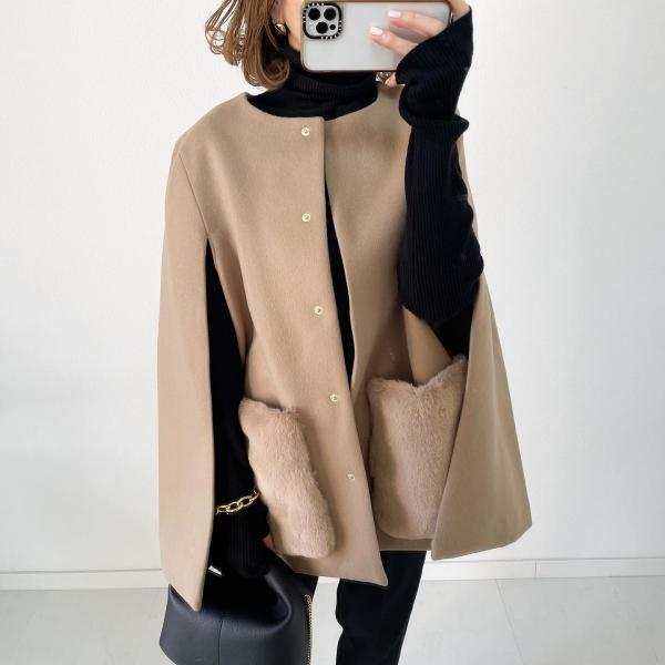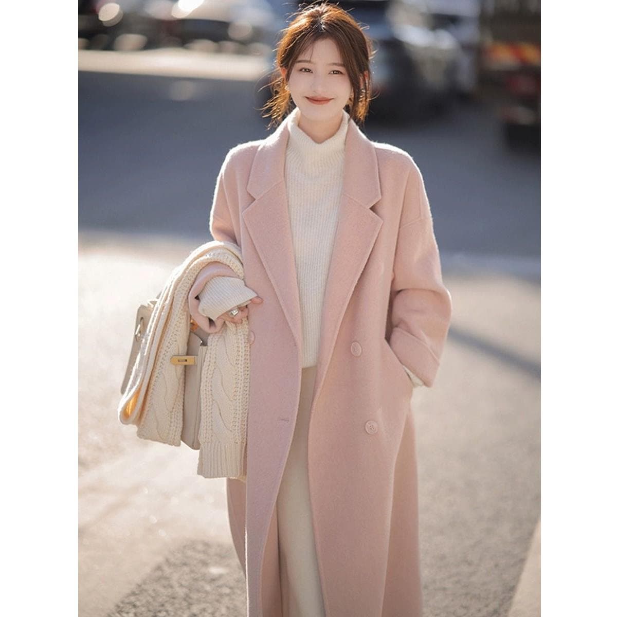 2024秋冬新作小柄韓系ツイードコートピンクリバーシブルラシャコートレディースミディアム丈 トレンチコート