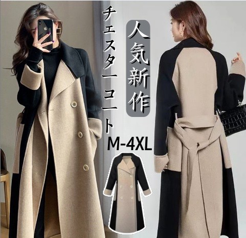 人気大人っぽチェスターコート 冬アウター オーバーサイズ コート女 ロング トレンチコート レディース 韓国 通勤 トレンチコート