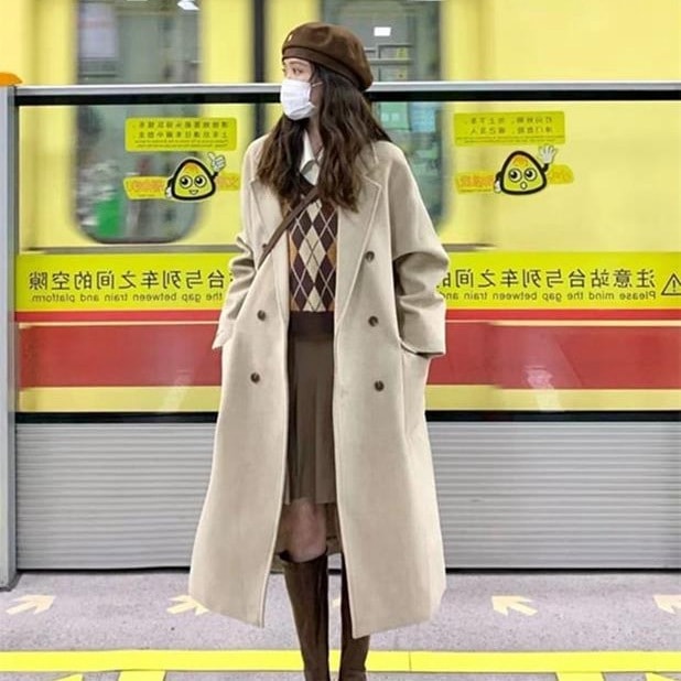 韓国ファッション レディース アウターツイードジャケット 秋冬ダブルブレストコート トレンチコート