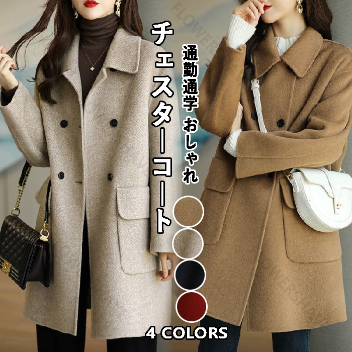 大人っぽチェスターコート 冬アウター春トレンチコートチェスターコート レディース 大きいサイズ ピーコート 秋 無地 ウールコート ロング丈 ジャケット