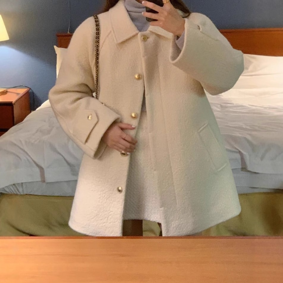 韓国ファッション レディース アウターラペルシングルブレストルーズツイードコートジャケット トレンチコート
