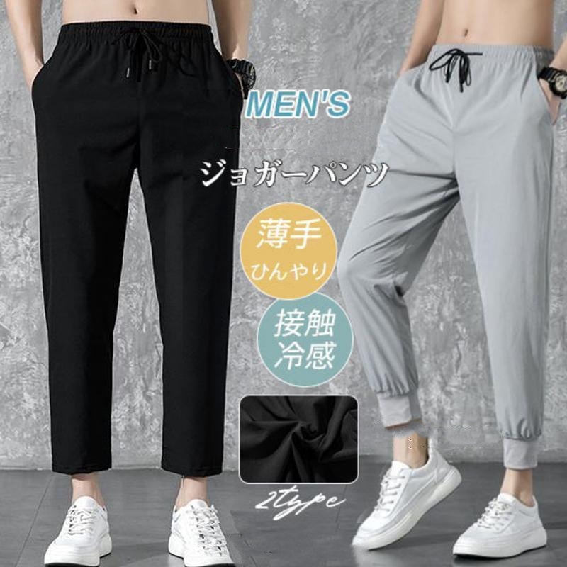 ジョガーパンツ メンズ アイスシルク 接 ロングパンツ パンツ メンズファッション