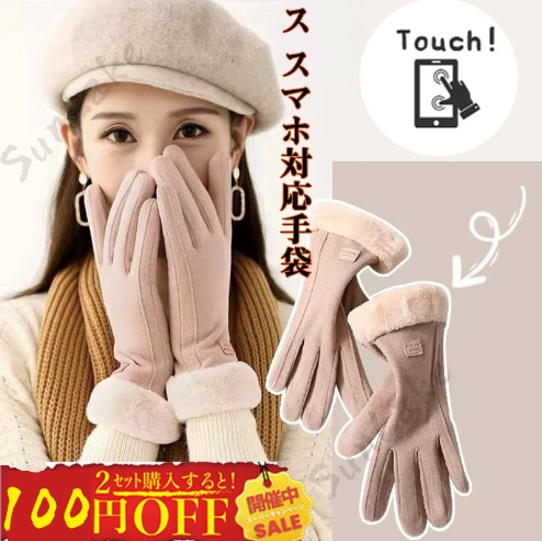 2枚購入でさらにお買い得 手袋 手ぶくろ グローブ レディース スマホ対応 防寒 自転車 作業用 スマホ手袋 タッチパネル 冬 かわいい 撥水加工 裏起毛 厚手 保温 アウ