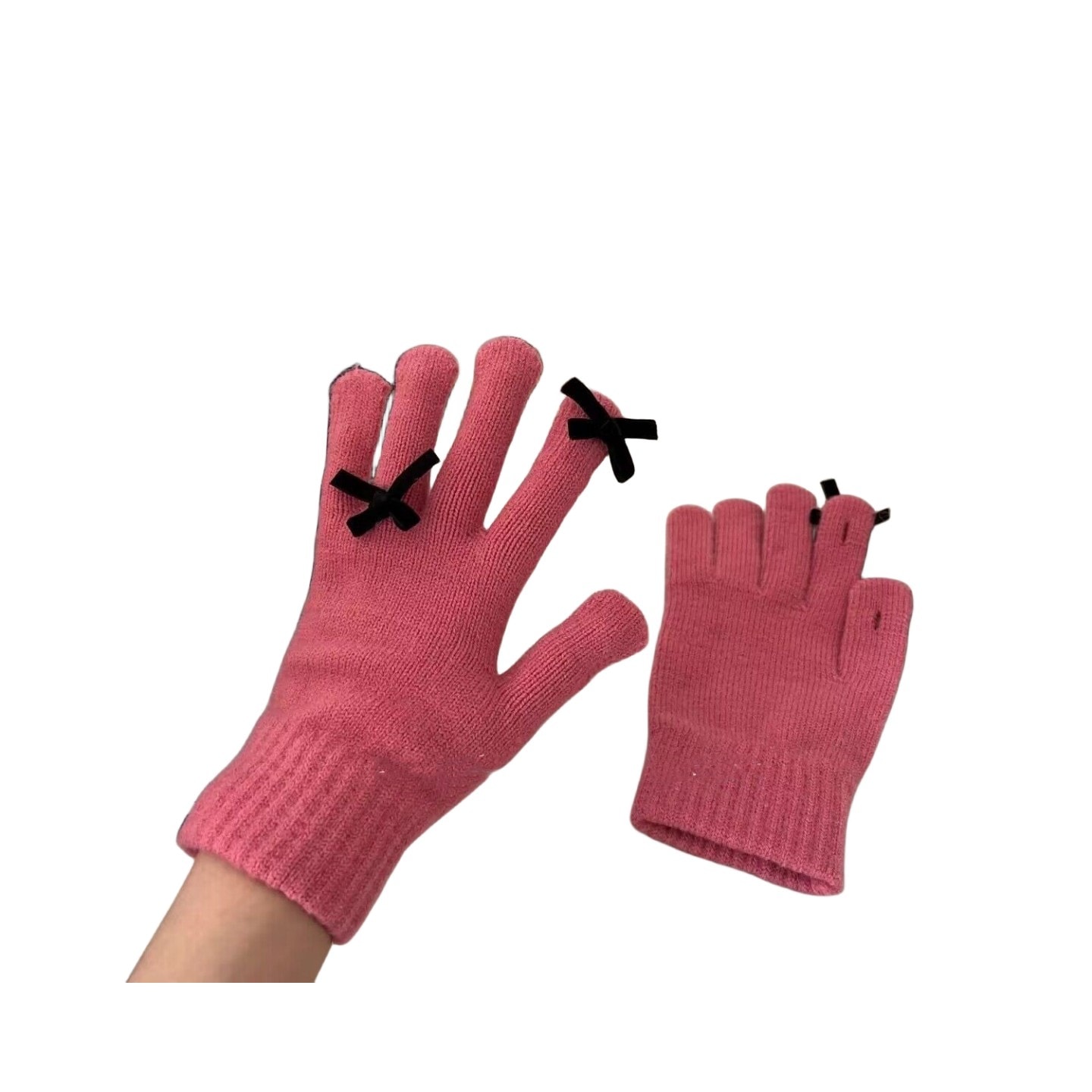 冬の保温手袋イチゴ可愛い甘甘指タッチ学生ギャザー防寒柔軟自転車用手袋女性 ニット手袋
