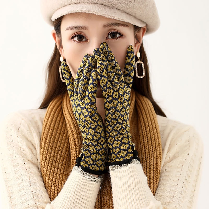 レディースニット花の絵柄エレガント手袋防寒温暖かいお肌に優しい柔らかいタッチスクリーン手袋滑り止め ニット手袋