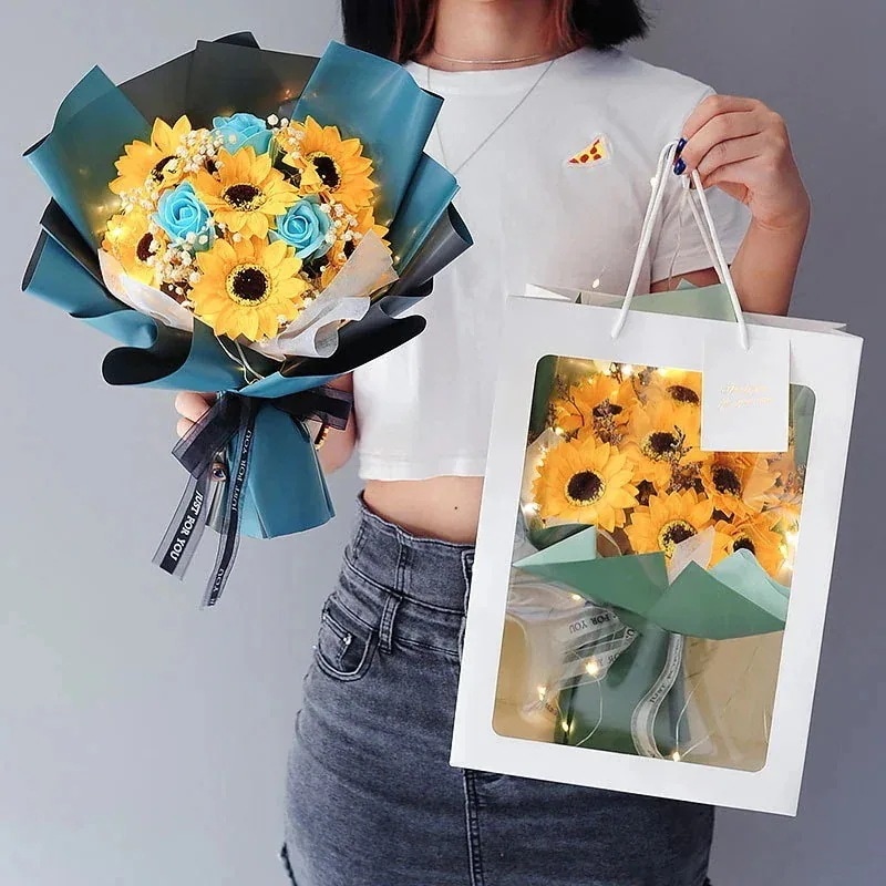 砕いたアイス ブルー ソープ フラワー 完成したブーケ バラの花 ギフト バッグ バレンタインデー サプライズ ギフト ソープ フラワー ガールフレンドへ