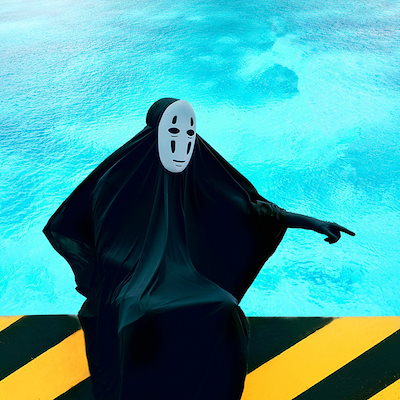 千と千尋の神隠し風コスプレ変装仮装 カオナシ コスプレコスチューム子供ステージ キッズ顔のない男性 キャラクター服