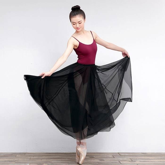 ジュニア 大人用 バレエ スカート ダンス スカート 2重チュール 80cm丈 ロング丈 ウエストゴム ブラック ホワイト 黒 白 ふんわり 無地 レッスン着 レッスンウエア バレエ ダンス 発表会
