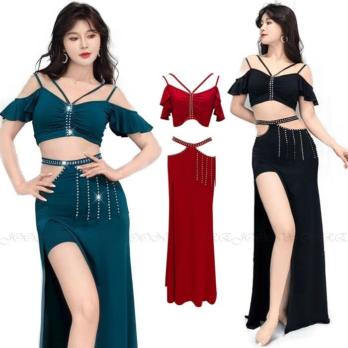 全8色 レディース セット ベリーダンス衣装 練習着 社交ダンス ダンスウェア 舞台衣装 ステージ衣装 ベリーダンス トップス 衣装 ヒップスカーフ 上下セット レッスン着 ロング丈 ダンスウェア ス