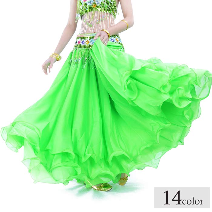 ロングスカート 黄色 シフォン 白 黒 紫 フリルスカート コスチューム スカート フリル ダンス ベリーダンス 3層 アラビアン 衣装 華やか シフォンスカート 青 コスプレ ベリーダンス ダンス衣