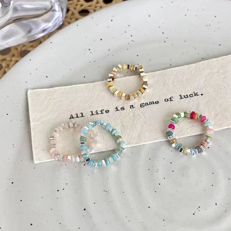 韓国の新型カラービーズ砕銀指輪女性百合甘い手飾り小衆デザイン感ファッション弾力指輪 指輪