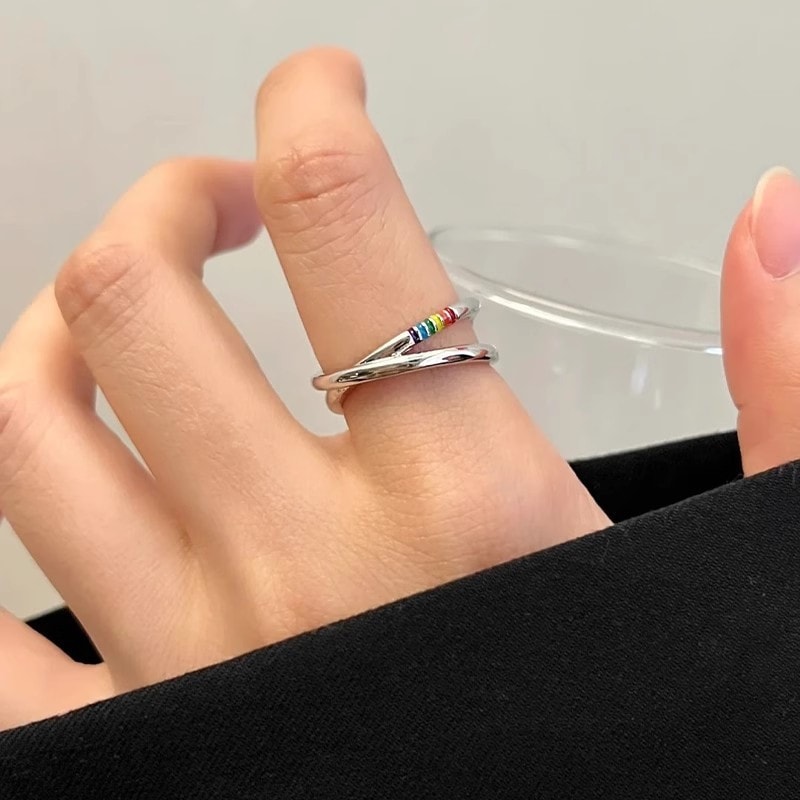 虹の指輪 レディース 女性 アクセサリー ins シンプル 軽贅沢ファッション 小物 かわいい 調節可能 指輪