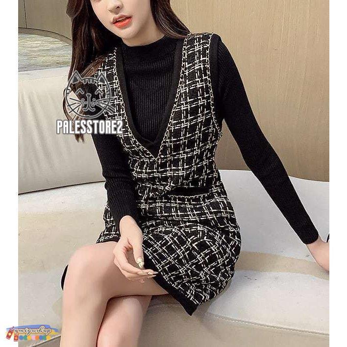サロペットスカート レディース カジュアル ワンピース ジャンパースカート Vネック ツイード ショート丈 ガーリー レトロ 着回し 体型カバー 可愛い おしゃれ