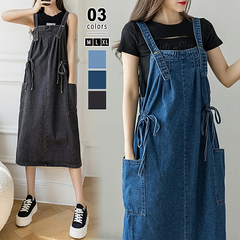 キュートなサロペットスカート レディースサロペットマキシ丈ロングデニム ワンピース ジャンスカ ジャンバースカート オーバーオール ワンピ デニムワンピースポケットつきスカート チ