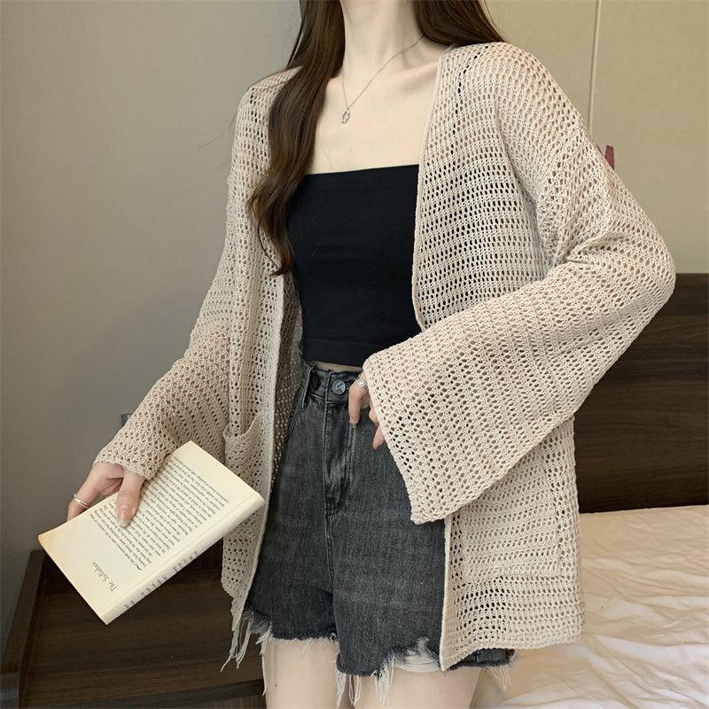 韓国ファッション UVカットカーディガン ベーシックニット紫外線対策 カーディガン ゆったりスウェット アウター トップス アウターメガ割 カーディガン